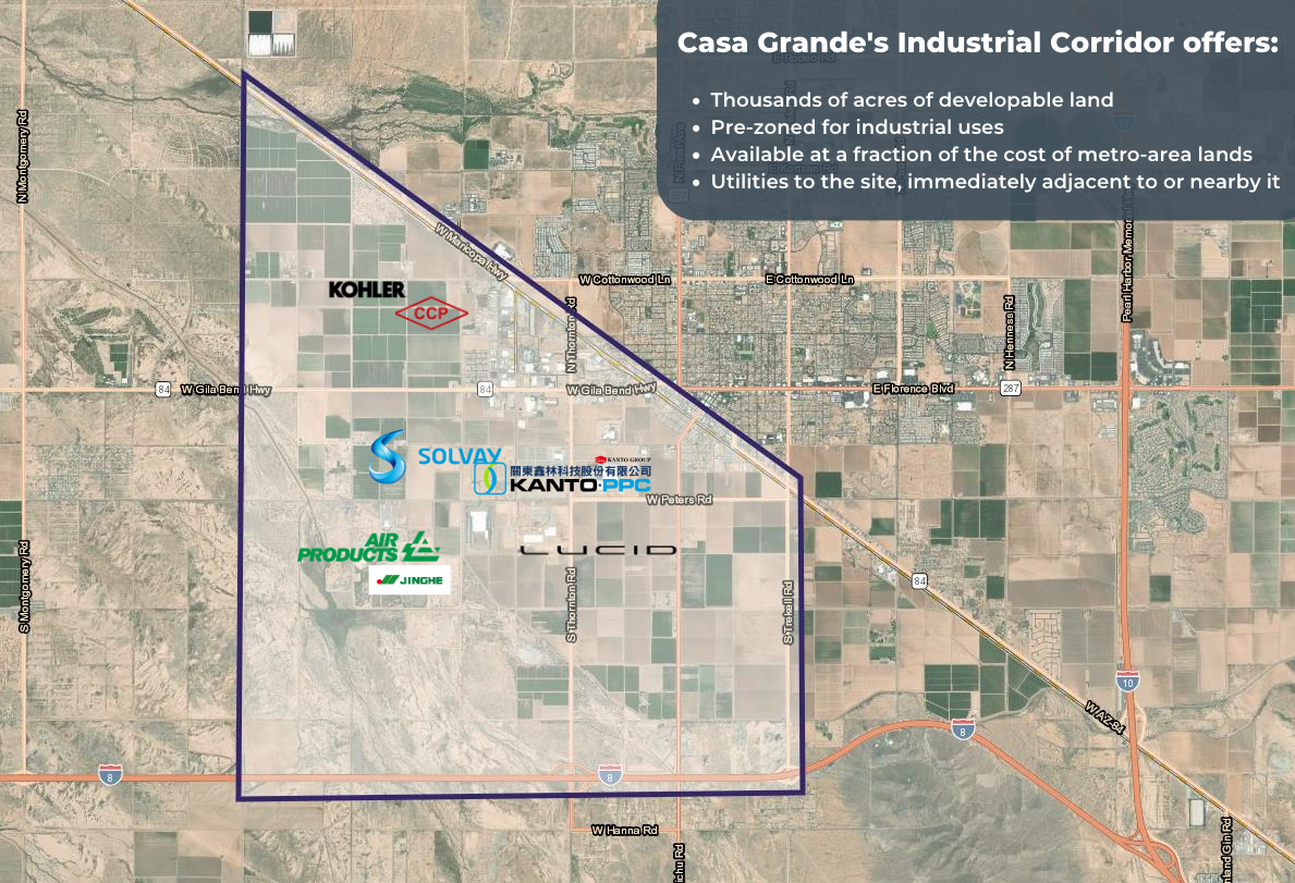 Our Industrial Corridor is home to numerous manufacturing and logistics companies that can take advantage of incentives associated with federally recognized Opportunity and Foreign Trade Zones and New Market Tax Credits. Casa Grande employs an effective development team approach to all new projects/companies. Our team provides direct access to decision-makers who review and approve business plans and permits. We proactively communicate with your representatives to expedite all review processes.