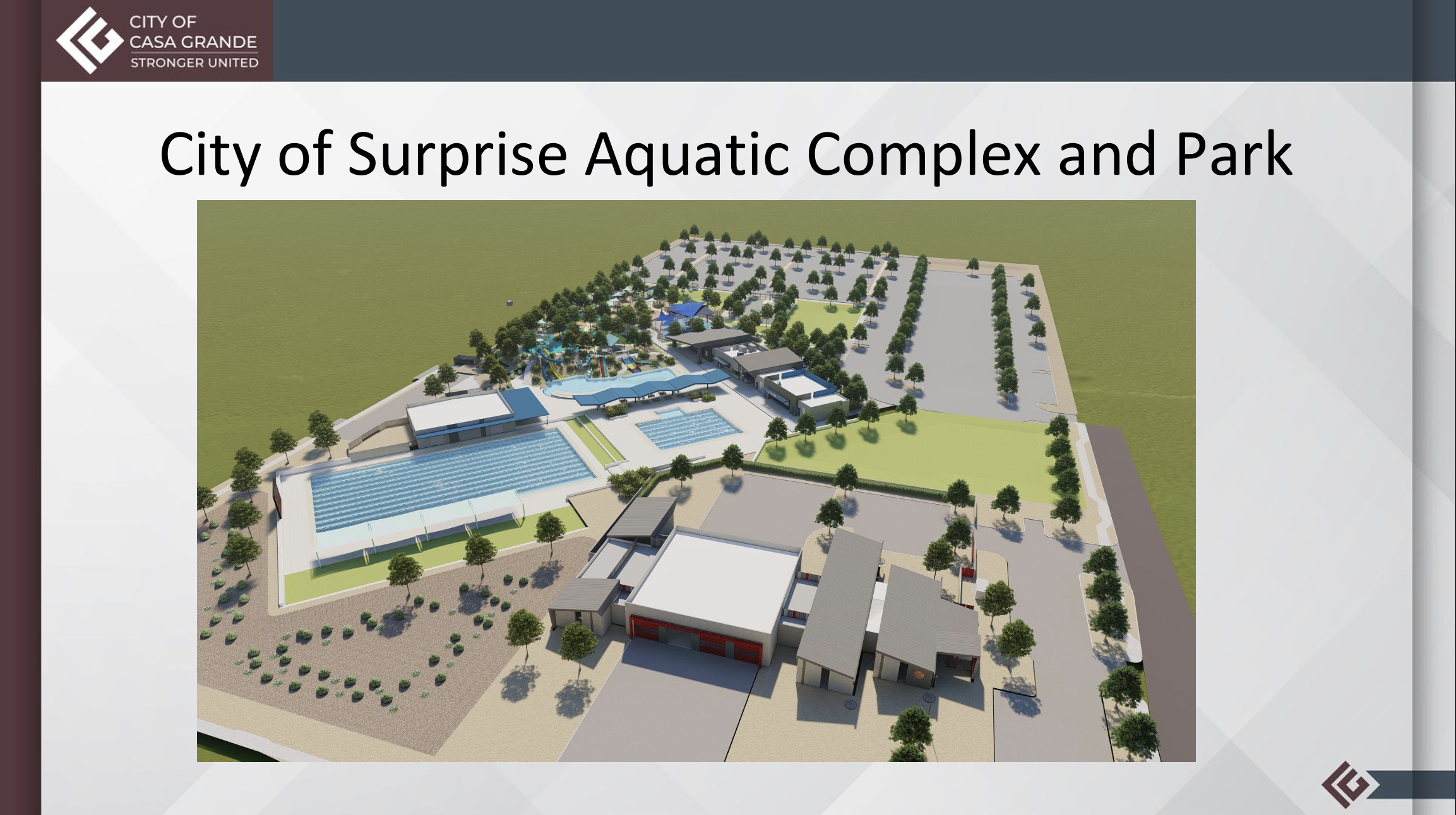 The City is excited to propose a brand-new, state-of-the-art Aquatic Complex as part of the upcoming General Obligation (GO) Bond initiative. This facility will feature a heated, recreational, and competitive swimming pool. Other recreational amenities may include: Water slides, ramada spaces, picnic patio, family pool with zero depth entry, lazy river, and spray playground.