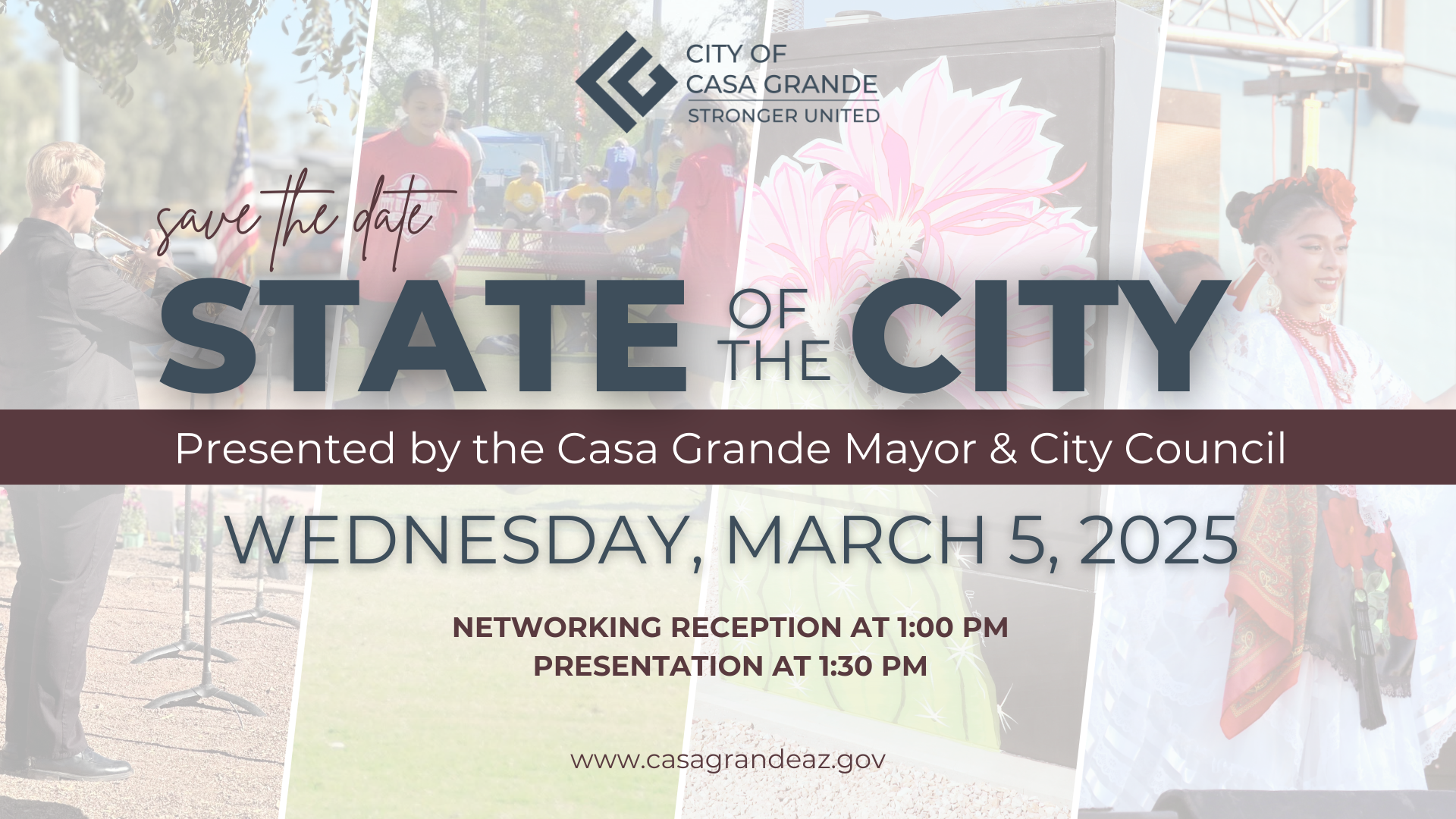 Casa Grande, AZ – Mayor Lisa Navarro Fitzgibbons and the Casa Grande City Council invite the community to attend the annual State of the City Address on Wednesday, March 5, from 1:00 p.m. to 2:30 p.m. at the Casa Grande Community Recreation Center (1905 North Peart Road).