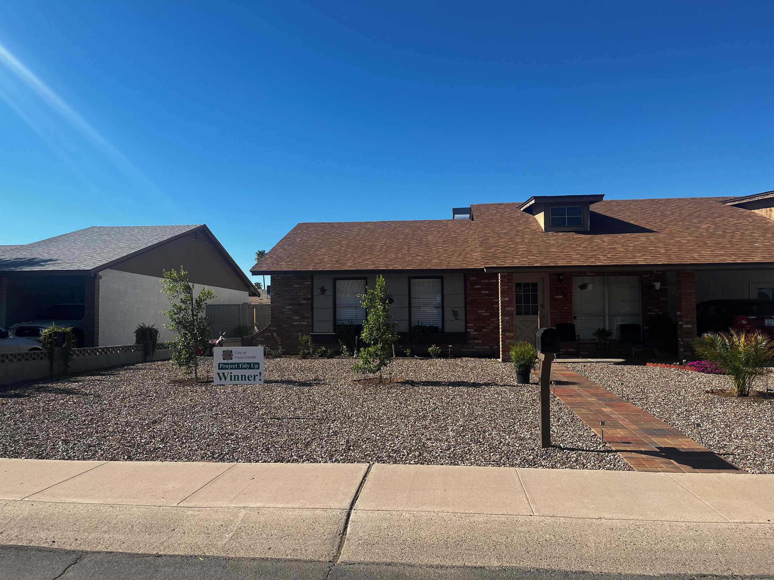 The City of Casa Grande Code Enforcement Division began a program to recognize and express appreciation to homeowners in various neighborhoods who have made significant efforts toward maintaining a beautiful and code violation-free home. Often, this doesn’t involve a large financial investment but, rather, time and energy spent removing trash, weeds, odds-and-ends, making landscape improvements, painting, repairing, and general cleaning. The result is a property that instantly stands out from those around it. It is a home with street appeal.