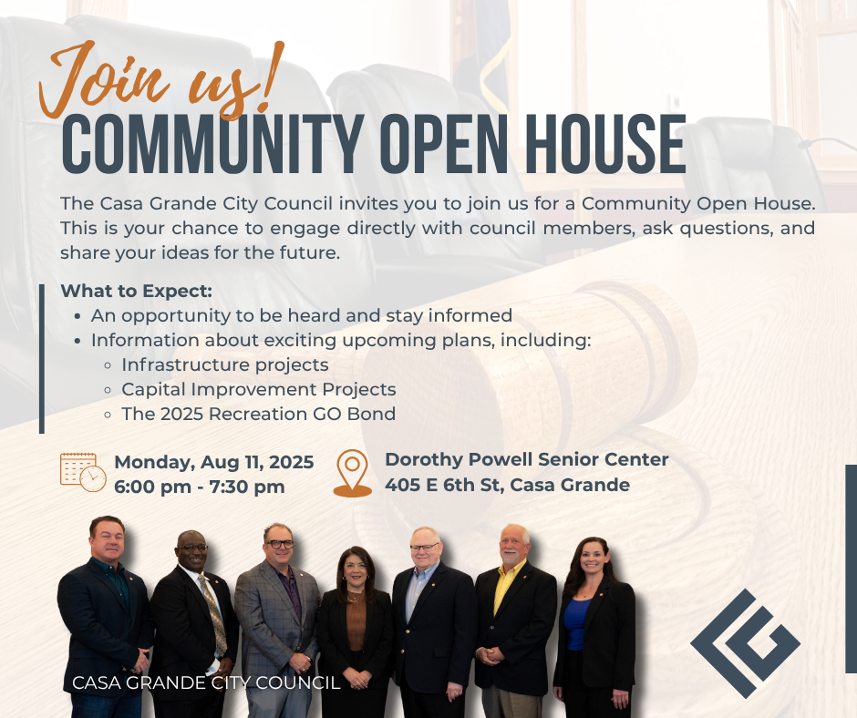 CASA GRANDE, AZ — The City of Casa Grande is calling on all residents to join the conversation at its upcoming Community Open House, an important opportunity to meet with City Council and staff members and share your ideas, ask questions, and provide feedback on anything city related.